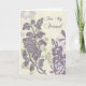 Cartão de agradecimento para dama de honra para sua amiga em tons elegantes de bege e roxo com design floral delicado.