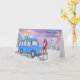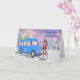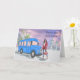 Cartão de agradecimento para o seu guia turístico. O design é um ônibus com uma linda senhora ilustrada ao lado. O céu é colorido e há árvores espalhadas pelo design.