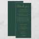 Um cartão de agradecimento de recepção de casamento elegante em esmeralda verde e dourado. Personalizado com sua mensagem especial de agradecimento em tipografia sofisticada. Um agradecimento especial para seus convidados. Criado por Thisisnotme©