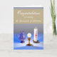 Expresse sua alegria na recepção completa do seu candidato RCIA/OCIA na Igreja Católica com este lindo cartão de congratulações. O cartão apresenta a Santa Eucaristia suspensa sobre o cálice com o Sangue Precioso, um jarro de água simbolizando o batismo e a vela pascoal acesa representando o fogo do Espírito Santo na Confirmação. A mensagem na frente declara: "Parabéns por receber os sacramentos da iniciação". O lado esquerdo interno fornece uma citação de Filipenses 1:6 — "Tenho certeza de que aquele que começou a boa obra em vocês irá completá-la até o dia de Jesus Cristo". Você, como padrinho, tem a opção de personalizar uma mensagem no lado direito do cartão no espaço fornecido.