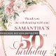 Fully customizable, these 50th birthday thank you cards allow you to personalize names, dates, or messages, making each note meaningful and unique. Ideal for women celebrating 50 fabulous years, these rose gold and blush floral thank you cards are a beautiful way to share gratitude while preserving the elegance and joy of a truly unforgettable celebration.
