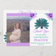 Cartão De Agradecimento Pavão Verde e Azul | Flores De Aquarelas Roxas