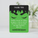 Este cartões de agradecimentos Frankenstein mostra detalhes de cicatrizes costura e um esquema ousado de cor verde e preto, ideal para as celebrações do Halloween, gótico ou de temas monstruosos. Personalize o cartão para expressar sua gratidão com um toque único e memorável. Perfeito para agradecer aos convidados após chás de fraldas, aniversários ou festas temáticas.