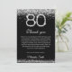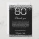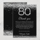 Celebre um marco com o nosso elegante cartão de agradecimento de 80º aniversário em prata e preto. Com acentos de diamante cintilantes, este cartão elegante é perfeito para expressar gratidão após uma festa de 80º aniversário. Personalize com mensagens de cartão de aniversário sinceras para agradecer aos convidados pelo seu amor e presentes. Impresso em papel premium, é um souvenir chique para um Feliz 80º Aniversário.