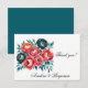 Cartão De Agradecimento Peônias Coral e Azul Turquesa Casamento Dourado