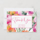 Cartões de agradecimento do chá de noiva elegante com peônias rosa magenta laranja, cores vibrantes e modernas tipografia casual