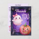 Pequeno fantasma bonitinho do Halloween com um cartões de agradecimentos de chá de fraldas cor-de-rosa, chá de fraldas de meninas no Halloween obrigado cartas