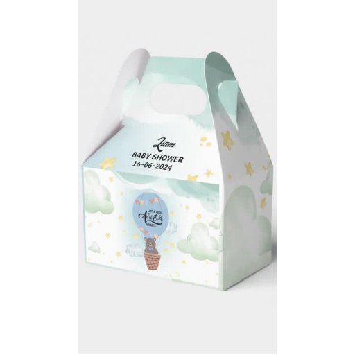pequeno homem aventura espera cartão de agradecimento urso balões azuis marrom bege brilho estrelas