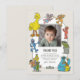 Este é um modelo de cartão de agradecimento no estilo retrô da Rua Sesame, perfeito para a festa de aniversário de uma criança. O cartão apresenta um espaço central quadrado para uma foto personalizada de um bebê ou criança. Ao redor da foto, há um elenco alegre de personagens clássicos da Rua Sesame. O design tem um fundo sutil e neutro, dando-lhe um visual clássico e atemporal. Abaixo da foto, o cartão inclui uma mensagem de agradecimento personalizada que diz: "OBRIGADO. Eu adorei o bolo e os presentes também, mas a melhor parte foi celebrar com VOCÊ! Obrigado por tornar meu aniversário tão especial!" O visual geral é nostálgico, fofo e perfeito para um primeiro aniversário ou qualquer celebração de criança pequena.