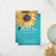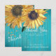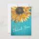 Placa Personalizada de Madeira de Celeiro em Tons Rústicos Elegantes de Girassol Azul Turquesa, cartão de agradecimento. Esses modelos simples tornam fácil personalizar. Cores de primavera, verão, outono e inverno, tema de jardim country. Cartão de agradecimento.