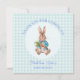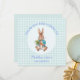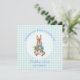 Personalize este Peter o coelho sentado segurando um design de cenoura e adicione um nome e ocasião Personalize o lado inverso: Obrigado por cumprimentar ou adicionar sua própria saudação
