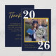 Show your gratitude in style with these elegant personalized graduation thank you cards, perfect for celebrating your Class of 2026 milestone. Featuring a modern navy blue design with gold accents and a customizable photo layout, this card creates a lasting impression.