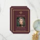 Set on a deep burgundy background with refined gold accents and classic serif typography, this memorial thank you card reflects a timeless European aesthetic inspired by traditional formal stationery. The elegant gold photo frame allows you to showcase a cherished photograph while maintaining a respectful and composed design.