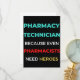 Pharmacy Technician Because Even Pharmacists Need Heroes design. This is a short funny quote which is great as an appreciation gift for Pharmacy Technicians. Also suitable as Pharmacy Technician Gifts.