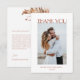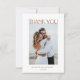 This elegant wedding thank you card in modern colors features dusty rose and blue flowers on terracotta tropical leaves and a custom photo on a white background. Matching wedding invitation available.