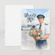 Cartão De Agradecimento Pilot holds flowers on the runway