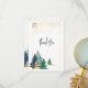 Cartão de agradecimento retrata um design simples de aquarela natural, incluindo pinheiros verdes, lavanda, roxo e dourado com uma moldura dourada. Apresenta uma mensagem inspiradora que pode ser personalizada ou excluída para uma nota manuscrita e o cartão usado em várias ocasiões.