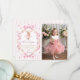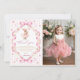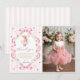 Pink Bow Gingham Bunny 1st Birthday Thank You Card