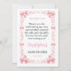Show your appreciation in the sweetest way with this Pink Bow Girl Baby Shower thank you card! Featuring soft pink tones and an adorable bow design, it perfectly matches your girly baby shower theme. Fully customizable with your personal message, these cards are perfect for thanking friends and family for their love, gifts, and support. A charming and thoughtful way to complete your baby shower celebration!