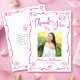 Cartão De Agradecimento Pink Hand Drawn Doodles Photo Graduate White Retro