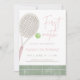 Celebrate your little star with this pink tennis first birthday party invitation. Featuring a soft watercolor tennis racket and ball in delicate pink tones, this design brings a sweet preppy charm to your celebration.