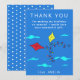 Pipas Bonitas Vermelho Amarelo com Nome Aniversário Infantil Cartão de agradecimento. Design fofo para crianças com duas pipas, uma amarela e uma vermelha. As pipas estão voando no céu entre as nuvens. Personalize o cartão com o nome da sua criança e sua mensagem.