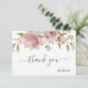 PixDezines monograma botânico rosas elegantes em flores de aquarela rosa poeira, acentuadas com cartões de agradecimento simples e modernos de letra manuscrita.