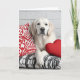 Placa Dia de os namorados do ouro Retriever. Fofinho canino contra fundo contemporâneo em vermelho, preto e branco. Sem flores, apenas corações e bolsas de beleza. Dentro é vazio deixado para sua própria mensagem.