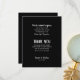 Cartão De Agradecimento Placa de Recepção de casamento Preta e Branca