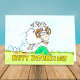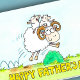 Esta bela carta de dia de os pais desenhada num estilo de desenho animado mostra um carneiro saltando sobre um arbusto verde parado sobre um campo, em frente a um céu azul. A ovelha macho tem duas borregas nas costas que estão claramente se divertindo muito com seu pai. Por baixo deles, as palavras "Happy Dia de os pais" são escritas em letras amarelas a negrito e manuscritas.