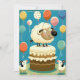 Celebrar com ovelhas adoráveis na festa de aniversário! Este cartão de boas-vindas apresenta ovelhas com festa de aniversário, cheias de balões e um bolo delicioso. Mande um cartão especial de aniversário que traga um sorriso para o rosto.
