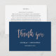 LEAH • Este cartão de agradecimento em azul marinho e dourado rosa é perfeito para casamentos românticos e elegantes. A paixão é trazida pela fonte de letra manuscrita fofa em textura de folha de “faux” dourado rosa, enquanto o fundo azul marinho estiloso combinado com o texto branco adiciona um toque de preciosidade. Esta coleção coordena bem com celebrações glamourosas, especialmente para eventos internos, outono ou inverno.