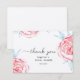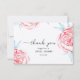Cartão de agradecimento plano para chá de noiva é decorado com encantadoras peônias em aquarela, flores cor-de-rosa suaves e folhas esmeralda.