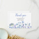 Cartão de agradecimento plano para chá de noiva com flores azuis. Design elegante de flor silvestre em aquarela. Fácil de mudar o texto.
