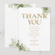 Com letras elegantes de folhagem dourada, este cartão de agradecimento de chuvade bebê chic pode ser personalizado com sua mensagem especial de agradecimento e nomes. Criado por Thisisnotme©