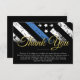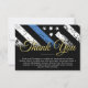 Este design apresenta uma bandeira da polícia com listras pretas e brancas, e uma fina faixa azul de linha também. Este cartão é excelente de enviar uma mensagem para o obrigado a todos os hóspedes que frequentaram o polícia aposentado, xerife, capitão ou chefe da festa de aposentadoria.