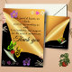 Celebre o amor e a amizade com este cartão de agradecimento lindamente projetado, apresentando um formato frontal em V dourado descascado que cai graciosamente em direção ao canto inferior com uma conexão preta elegante. No ponto de junção, duas borboletas delicadas em verde e amarelo repousam sobre uma vibrante rosa vermelha, simbolizando harmonia e renovação. Os cantos da moldura são suavemente adornados com sutils acentos florais em roxo claro, branco e creme, adicionando um toque refinado. Perfeito para expressar gratidão a amigos e entes queridos pelo apoio durante a celebração do aniversário de casamento.