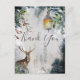 Cartão postal de agradecimento de Natal Cena Florestal de Inverno. Fundo nevado com uma lanterna e veado.
