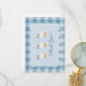 A thank you card that looks as considered as the gifts it acknowledges. This powder blue gingham thank you card features three bow-tied geese in the same scalloped frame as the matching invitation — cohesive, charming, and blank inside so you can write exactly what you want to say. The muted blue and white buffalo check linen pattern coordinates beautifully with the full baby shower suite. Order alongside the invitation so they're ready to go the moment the last gift is unwrapped.