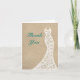 A tipografia turquesa e um lindo vestido de noiva de renda em um fundo de areia de praia decoram este cartão de agradecimento, tornando-o perfeito para um casamento na praia, destino, tropical ou náutico ou chá de noiva. O interior foi deixado em branco, pronto para sua mensagem pessoal, e é sutilmente acentuado com um par de estrelas-do-mar fofas. Se forem necessárias peças adicionais coordenadas, basta entrar em contato conosco em prettyfancyinvites@gmail.com com sua solicitação.