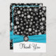 Este cartão de agradecimento festivo com flocos de neve pretos e brancos tem uma fita azul aqua FAUX e medalhão de floco de neve. Ele combina com o convite de casamento mostrado abaixo. Há também um cartão de agradecimento estilo cartão de saudação mostrado abaixo, se você preferir. Se você precisar de outros itens correspondentes neste design, por favor envie um e-mail para niteowlstudio@gmail.com.