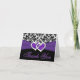 Este cartão de agradecimento de casamento com padrão de damasco preto e branco com uma fita roxa IMPRESSA e um broche de corações unidos com brilho FAUX e jóias de diamante combina com o convite de casamento mostrado abaixo. O texto é personalizável. Tudo será impresso como você vê no seu monitor. Eu não verei seu cartão, e a Zazzle NÃO irá corrigir nada (erros de digitação, desalinhamento etc.). Se você precisar de outros itens correspondentes, envie um e-mail para niteowlstudio@gmail.com.