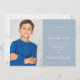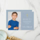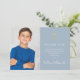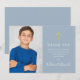 Com um nome de assinatura script e uma foto especial em um fundo azul empoeirado. Personalize com sua foto e mensagem especial de agradecimento da primeira comunhão em letras elegantes neste design elegante. Concebido por Thisisnotme©