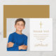 Com a característica assinatura dourada do nome. Personalize com a sua foto e mensagem especial de agradecimento da primeira comunhão em letras douradas elegantes neste design sofisticado. Concebido por Thisisnotme©