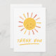 Um cartão de agradecimento de festa de aniversário de 1 ano com sol fofo e design moderno. Clique no botão de edição para personalizar este design com seus detalhes.