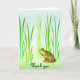 Este cartões de agradecimentos apresenta um pequeno sapo verde fêmea com uma barriga amarela sentada entre as gramíneas na lagoa. Ela parece solitário como se estivesse esperando seu Príncipe Encantado aparecer.