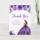 Este doce cartões de agradecimentos de 16 anos apresenta uma bela princesa em um vestido de bola roxa escura com arranjos florais. Isto é perfeito para uma doce festa de aniversário de dezesseis.