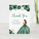 Cartão De Agradecimento Princesa no Vestido Verde Escuro Doce 16 Obrigado