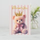 Princess teddy bear with a gold crown with complimentary candy cane pink stripes