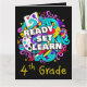 Citação de início de escola, “Pronto, Aprender – 4ª Série" para professoras e alunas. Apresentando ilustração gráfica colorida de materiais escolares. Uma maneira maravilhosa de mostrar sua paixão por começar uma nova turma da quarta série. Também é uma ótima ideia de presente para formatura de final de ano.